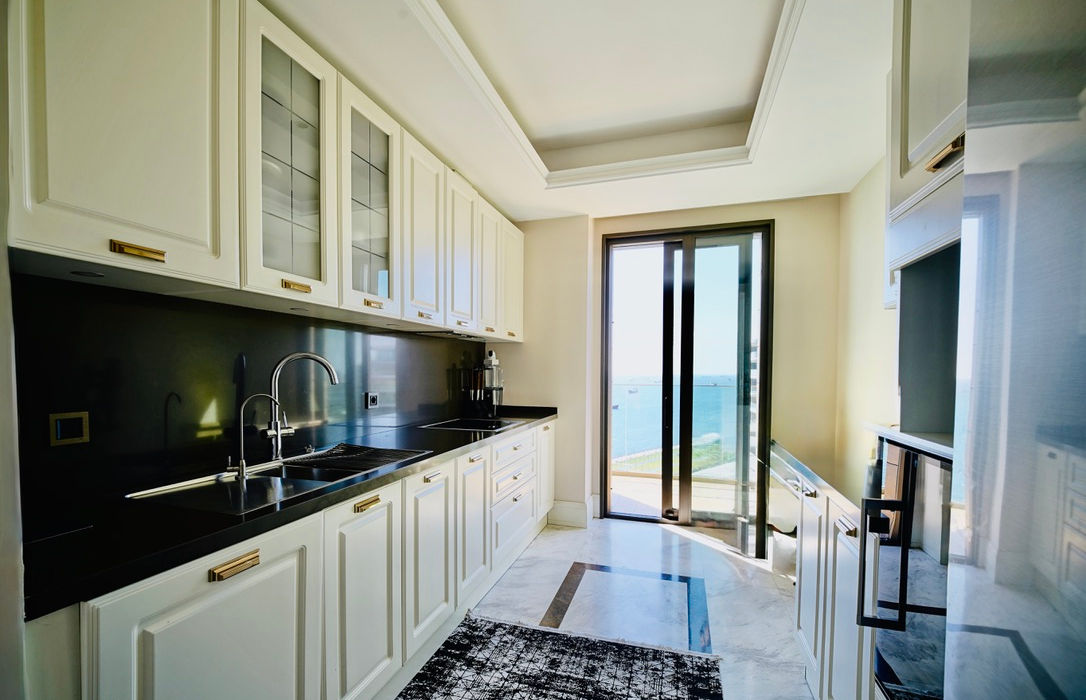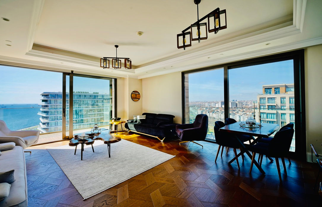 Full Sea View: Floor-to-ceiling windows act as a living frame for the deep blue of the Marmara, ensuring every sunrise is a private event.